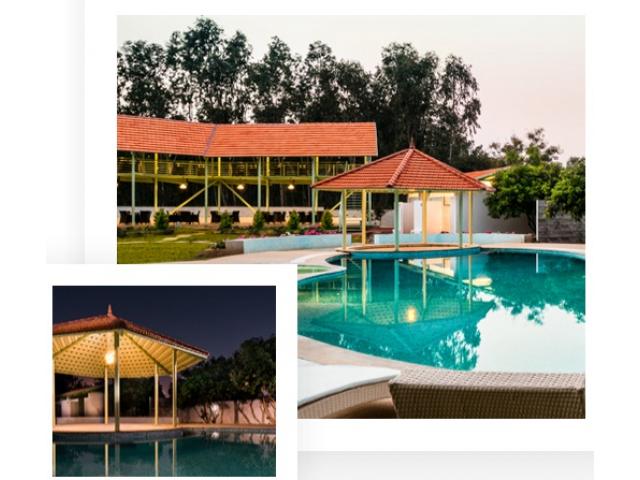 Fiestaa Resort n Events Venue is a Business Hotel, Resort and an Events Venue, all rolled into one, tucked cosily between eucalyptus groves, away from all the dust & din of the city, located between Bengaluru city and the Bengaluru International Airport. One can access fiestaa within, 20 minutes from Hebbal and 10 minutes from the Airport.